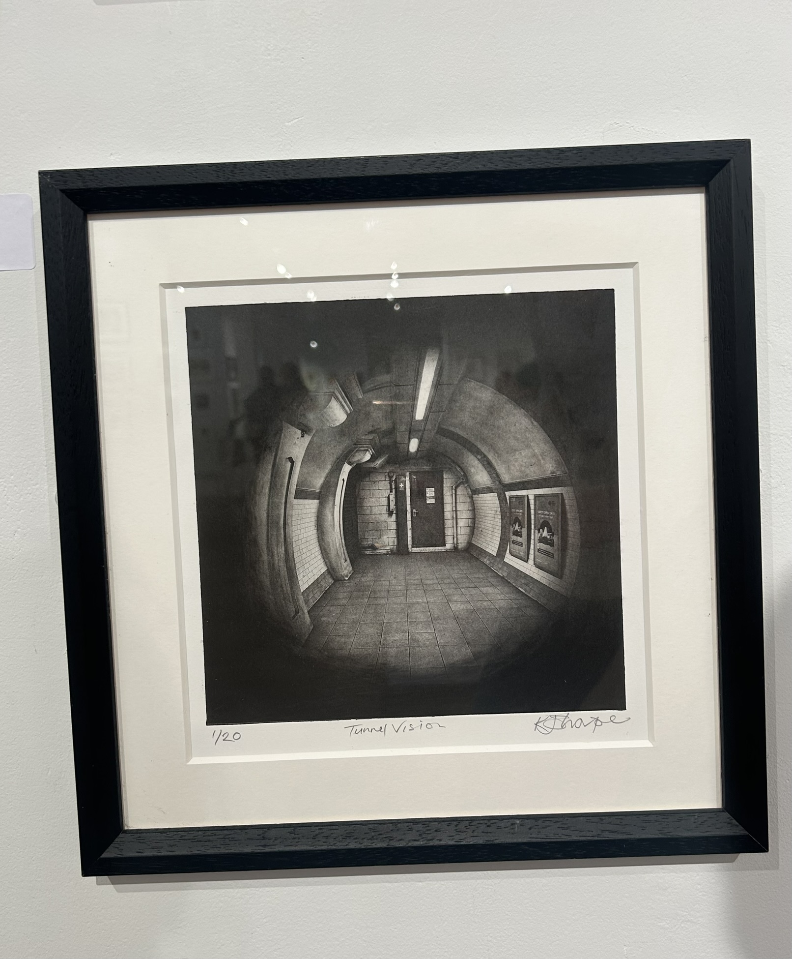 From monumental scale, the festival brought us back to intimacy at the Bankside Gallery, home of Small but Mighty. The exhibition celebrates printmaking in all its forms: etching, lithography, digital print, and experimental hybrids. And showcases how work at a modest physical scale can hold immense conceptual and emotional weight.