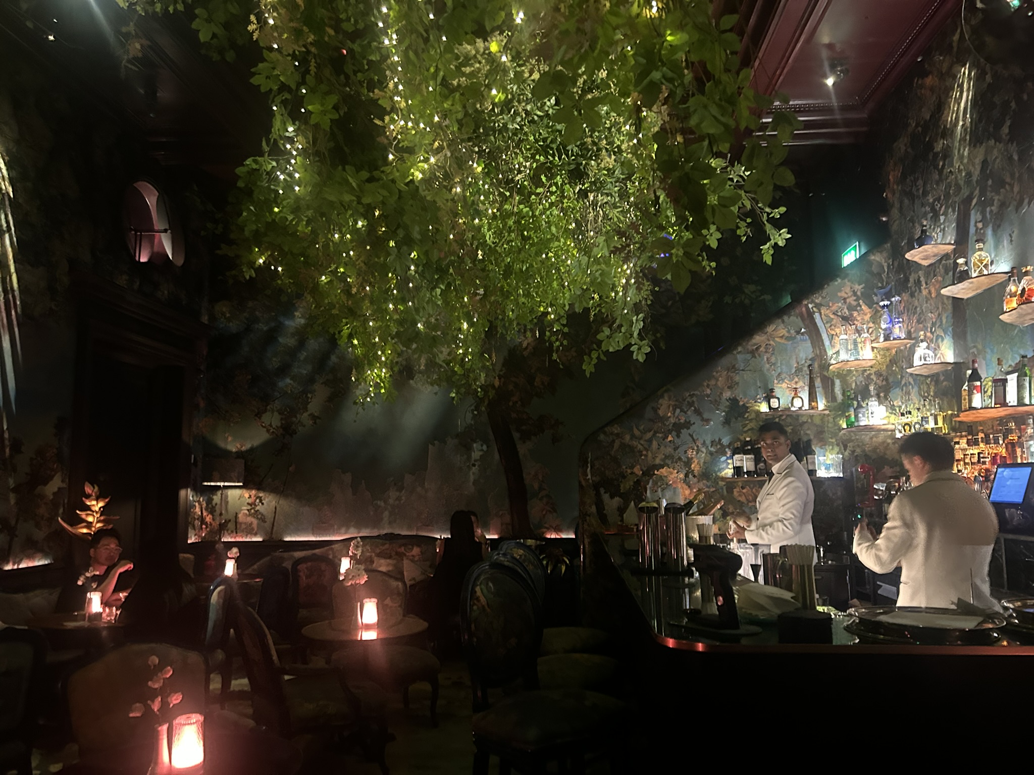What makes Sketch remarkable is its commitment to holistic theatricality. The design isn’t limited to furnishings and colors. The wait staff move like performers, their uniforms part of the visual identity. The menu items arrive as sculptural compositions. Even the bathrooms are world-famous: futuristic egg-shaped pods set beneath a kaleidoscopic ceiling of colored tiles.